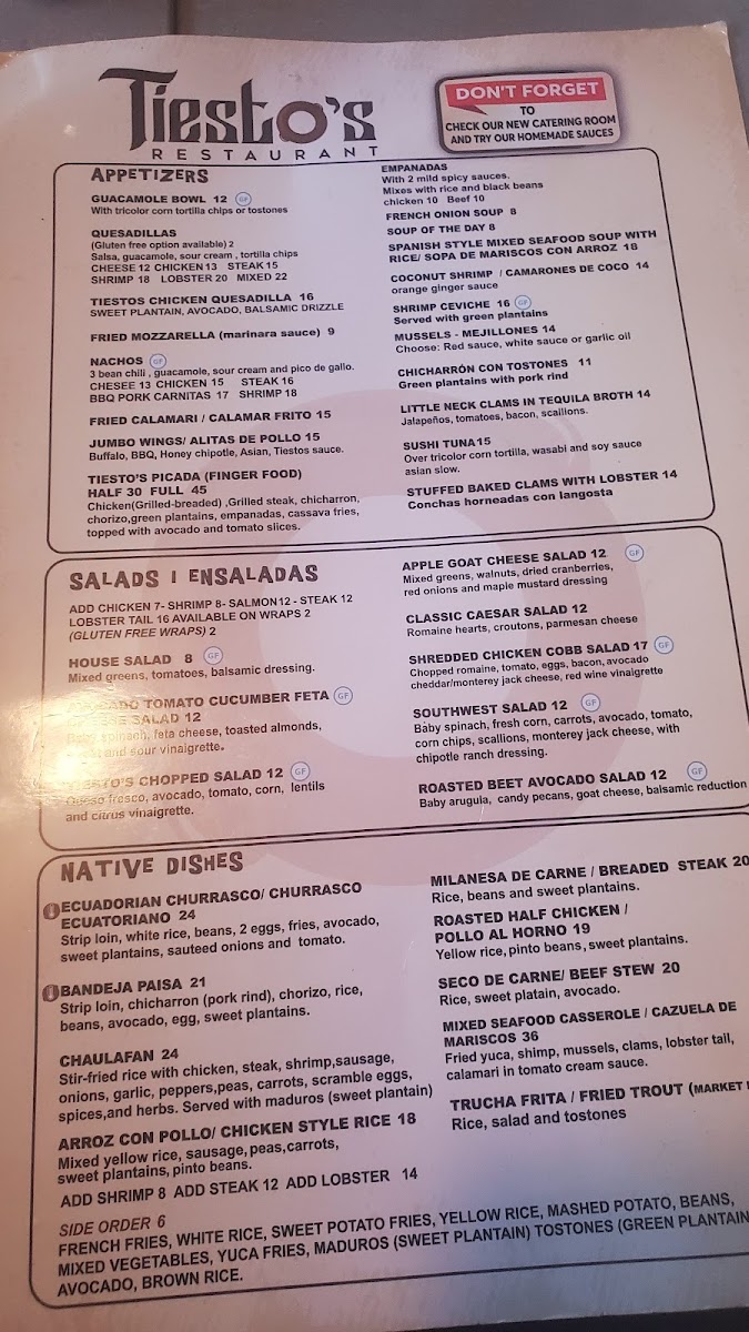 If you're in the mood for a meal that's both satisfying and full of flavor, Tiestos Restaurant Menu has something for everyone. Located at 411 W Main St, Patchogue, NY, this cozy spot is known for its diverse offerings, blending fresh ingredients with bold flavors. Whether you’re craving a hearty steak, a fresh seafood dish, or a light salad, there’s no shortage of delicious options to choose from.